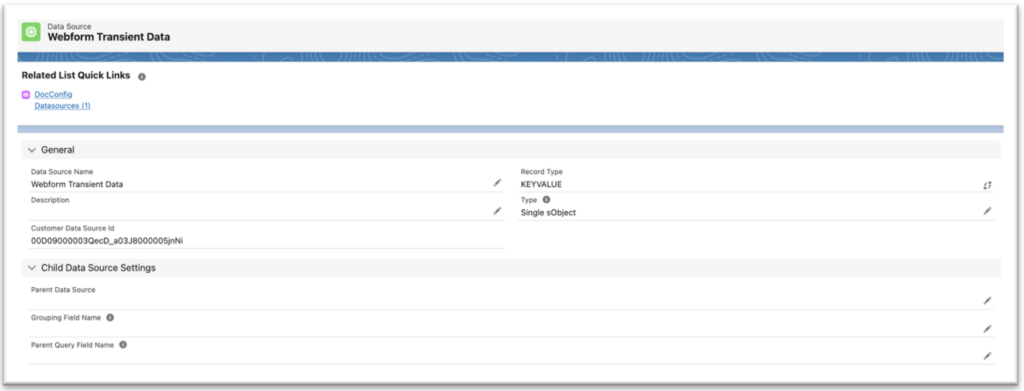 - For the transientDataSource – we need to setup a one more Data Source following steps for the same Doc Config with Record Type = KEYVALUE: