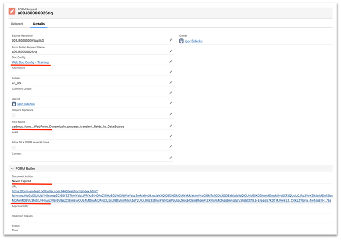 As a next steps, admins need to create a Form Request record to generate a Web Form link from the Doc Config. There are few types of the Form Request (FR):