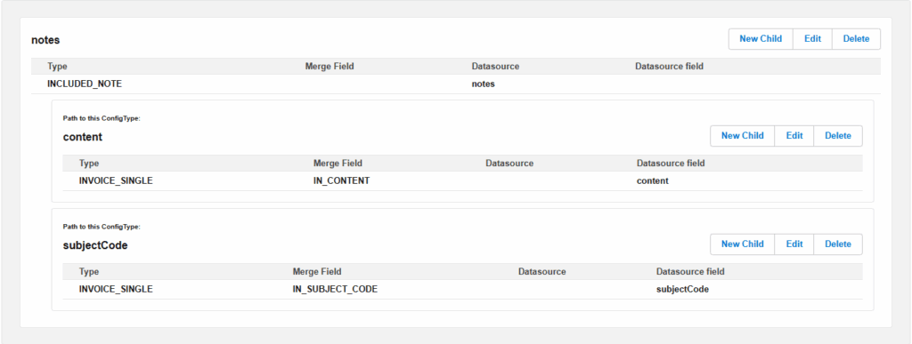 This Config Type “INCLUDED_NOTE” can have 2 child Config Types that will be explained below