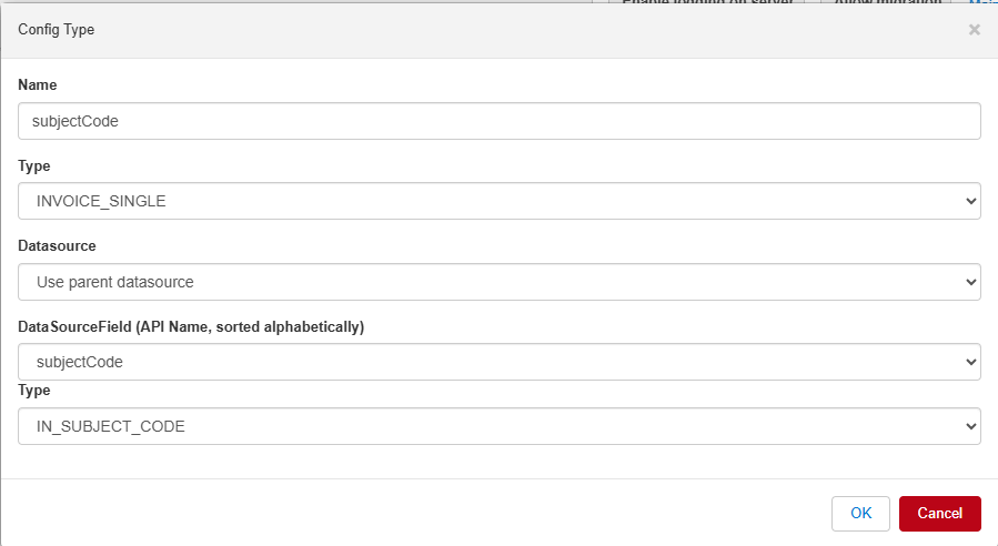 3) To set the Subject Code (eg REG) make the following config.