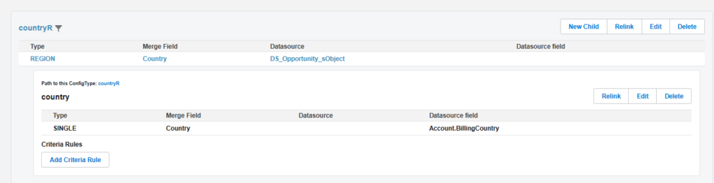 - Create Configtype for each merge field in the excel file as a child for Region configtype.