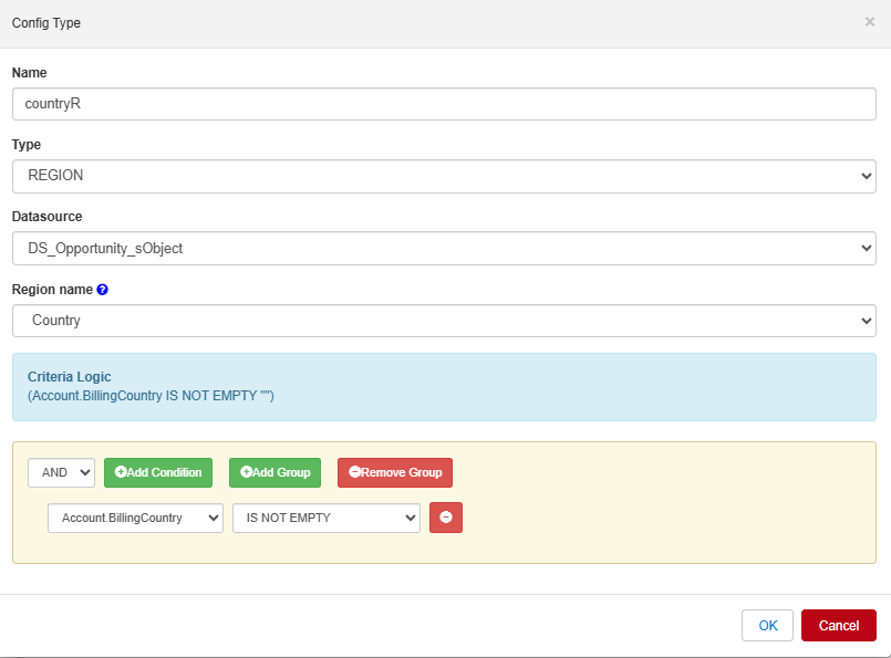 In your Excel ConfigType, select your Region and assign a Single Data Source.
