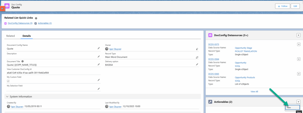 - When to run this Actionable: Before document generation but after the DataSources have been populated