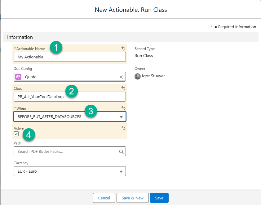 It is also possible to customize the Actionable with custom fields, Record Type and Page Layout. All fields on the Actionable__c SObject will be available in your code.
