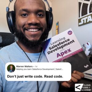 Today, Warren focuses on education and mentorship through his program Cloud Code Academy, where he trains aspiring Salesforce professionals in development skills that can jumpstart or elevate their careers.