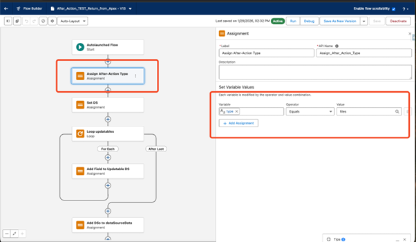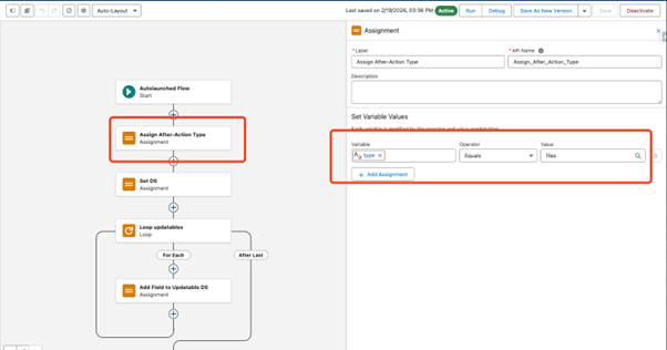Set the value in Assign After-Action Type to Files (for example)