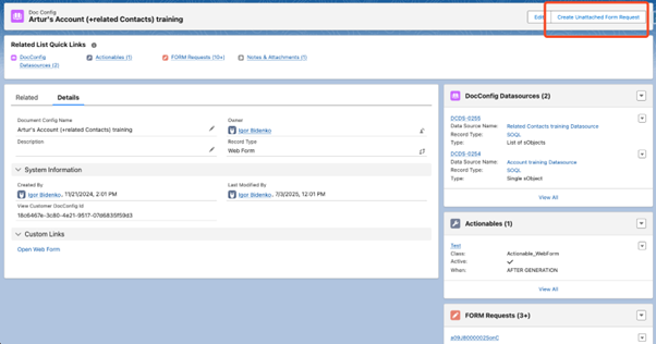 Create an Unattached or Attached Form Request and submit the form.