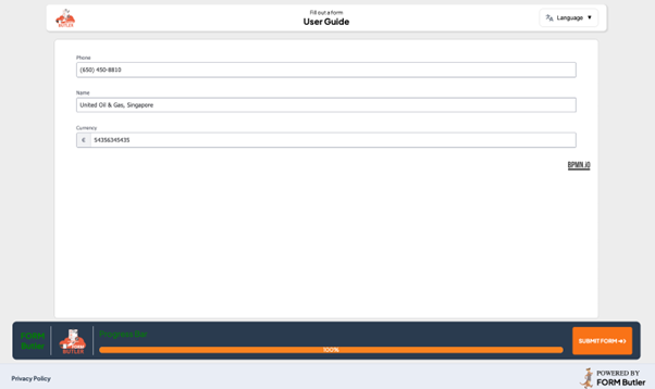 Open the Form Request link, enter some data, and click ‘Submit Form’