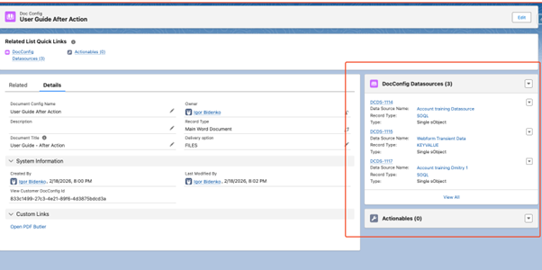 Note: The Data Config must contain the same fields that were added to the document. Only this document will be included as the After Action document.