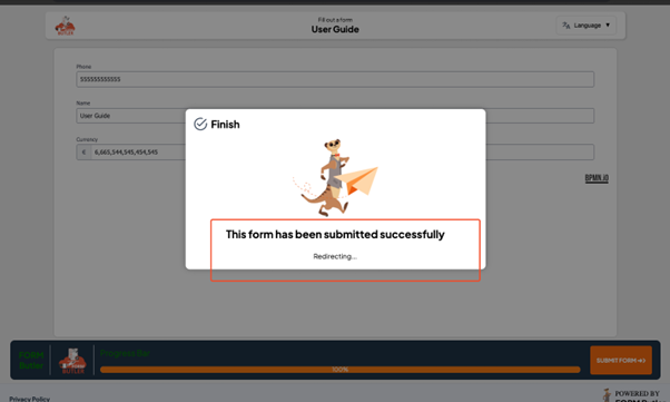 After submission, you will see the redirection message.