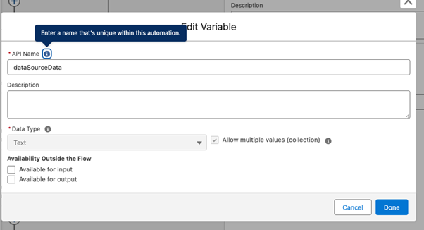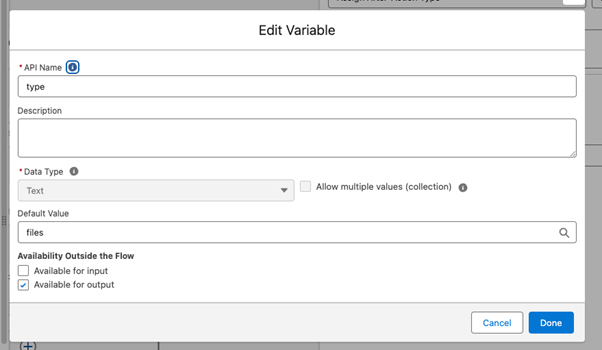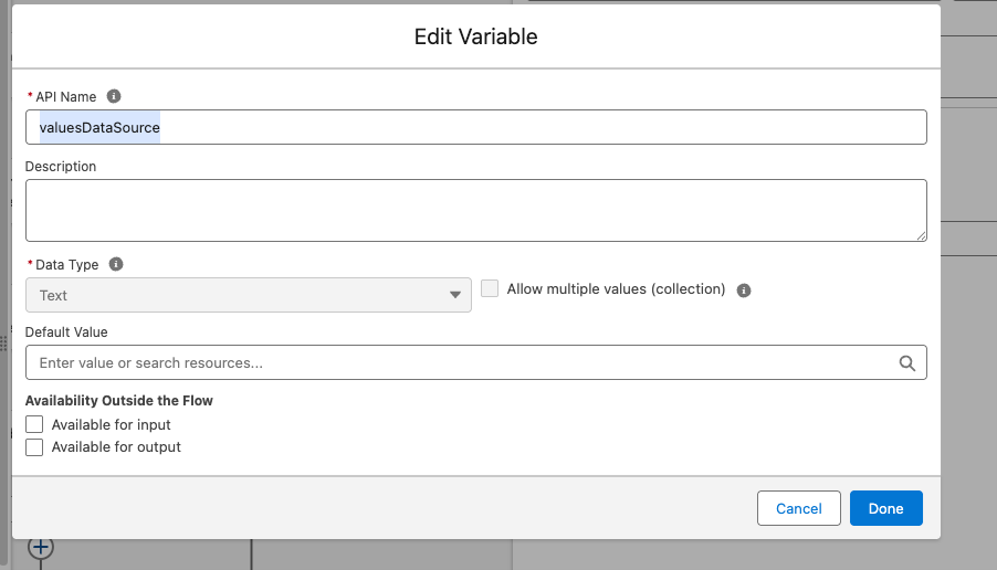 Add a new resource – Variable – in the Flow.
