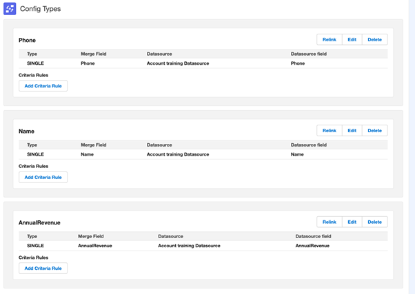 Example of an added Data Config